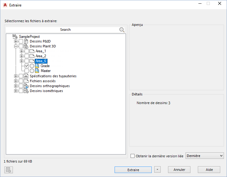 - Dans l'arborescence du gestionnaire de projets, cliquez sur un dessin avec le bouton droit de la souris. Cliquez sur Extraire.