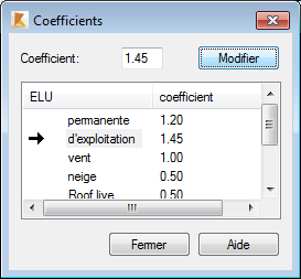 La boîte de dialogue Coefficients s'ouvre.