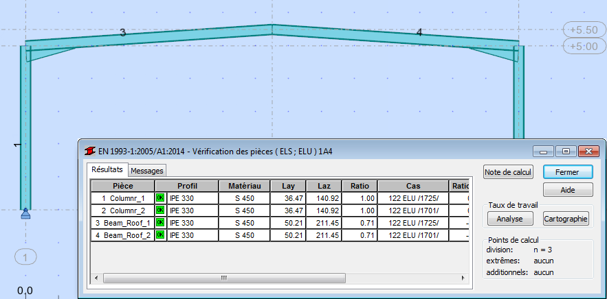 L’option de dimensionnement acier offre un moyen rapide et efficace de vérifier les profilés utilisés dans la structure.