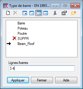 - Dans la zone de texte Type de barre de la boîte de dialogue Définition des barres, entrez Beam_Roof.