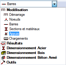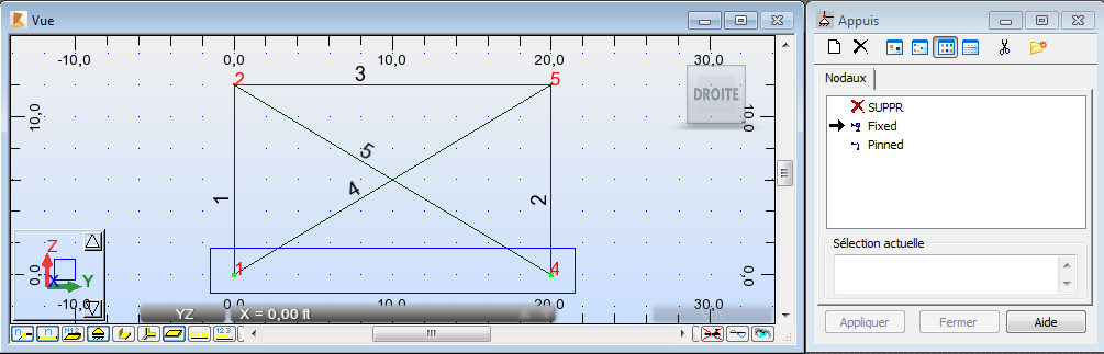 La présentation est divisée en trois parties : la vue, la boîte de dialogue Appuis et le tableau Appuis.