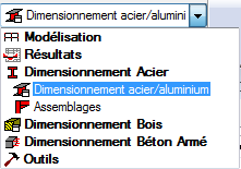 - Dans la barre d'outils standard, dans le menu déroulant Présentation, sélectionnez Dimensionnement Acier, puis sélectionnez Dimensionnement acier/aluminium, comme illustré ci-dessous.