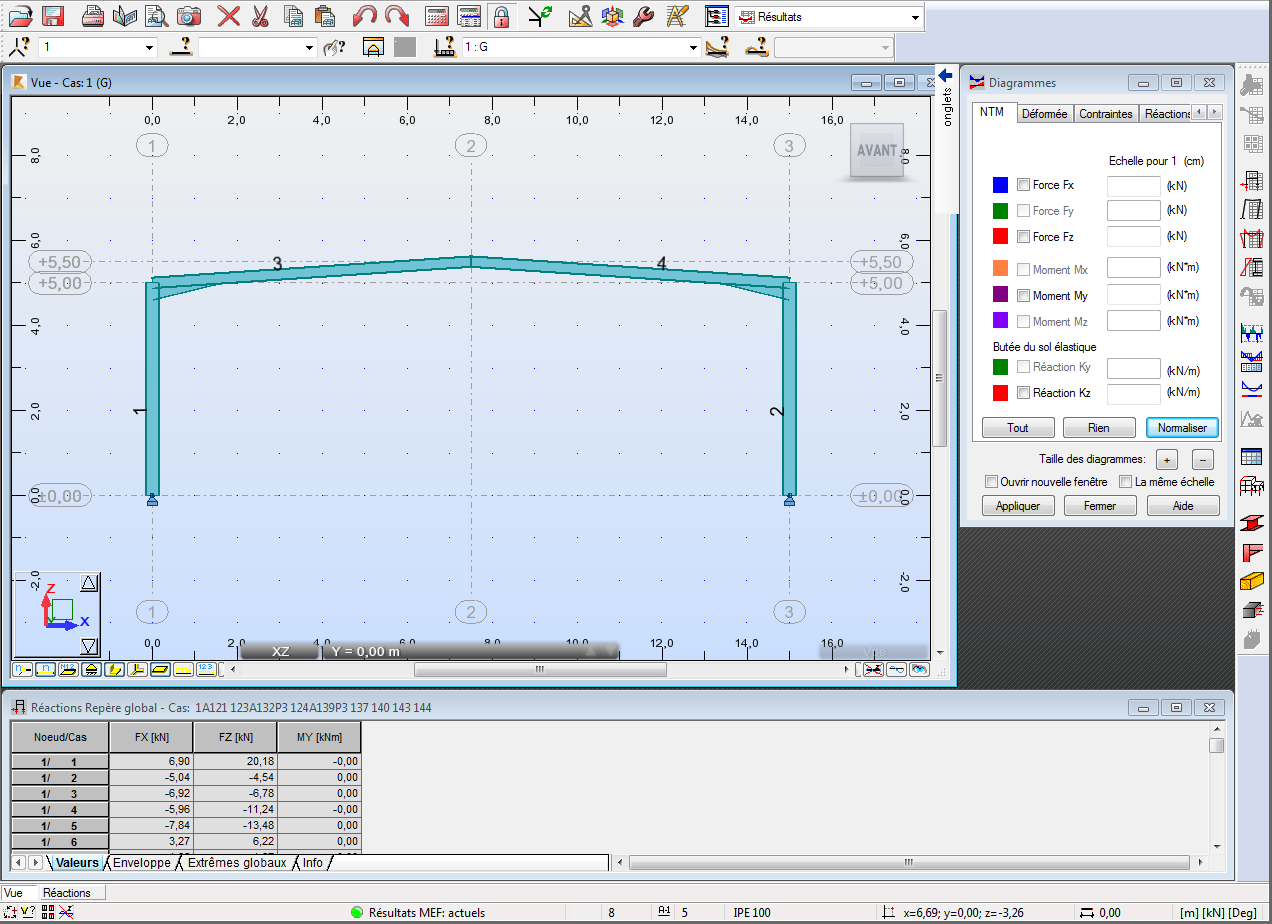 - Dans l'onglet Réactions, sélectionnez FX et FZ, puis cliquez sur Appliquer. Le nouveau diagramme combiné s'affiche, comme illustré ci-dessous.
