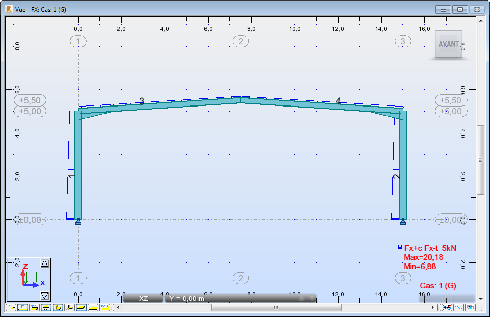- Plusieurs tableaux peuvent être appliqués à une vue. Ouvrez l'onglet Contraintes, sélectionnez Maximales– S max et cliquez sur Appliquer. Les efforts précédemment sélectionnés et les contraintes s'affichent.