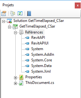 Dans cet exemple, l'explorateur de projets IDE réactualisé pour GetTimeElapsed_CSharp contient ce qui suit :