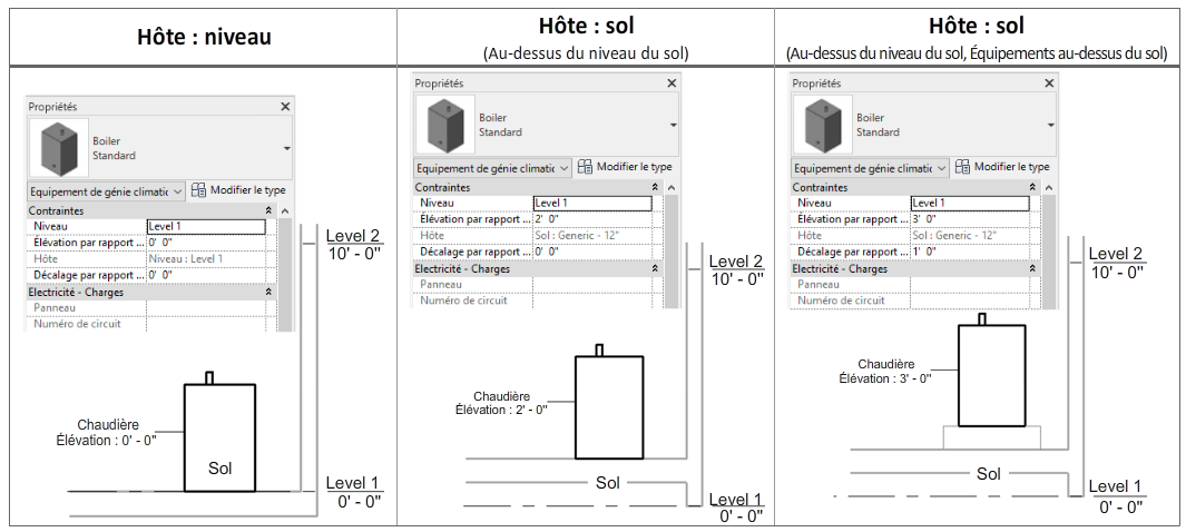 Vous pouvez modifier le paramètre Élévation par rapport au niveau en fonction du placement d'un élément.