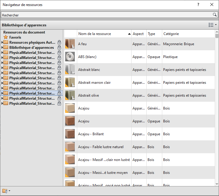 Les ressources sont enregistrées dans un projet Revit ou dans une bibliothèque. Les ressources qui se trouvent dans un projet Revit mais qui ne sont référencées par aucun matériau sont enregistrées dans la bibliothèque des ressources non référencées. Vous pouvez créer et modifier des ressources non référencées lors d'une session Revit en fonction de vos besoins. Toutefois, vous devez enregistrer votre projet Revit pour enregistrer les ressources non référencées créées ou modifiées durant la session.