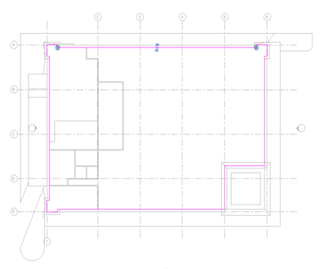 - In the drawing area, highlight an entry wall. When a dashed line is displayed on the exterior of the wall, press Tab to select the chain of walls, and click to place the roof lines.