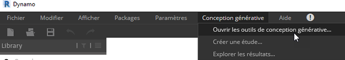 - Dans Dynamo for Revit, un nouveau jeu d'outils rationalise et simplifie le processus de création et de mise à jour pour les graphiques utilisés comme types d'études de Conception générative. Pour accéder à ces outils, cliquez sur Conception générative