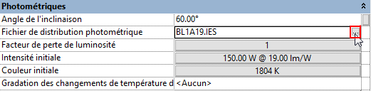 - Cliquez dans la colonne Valeur du paramètre Fichier de distribution photométrique.