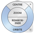 Les disques de navigation complète (le grand et le petit) contiennent des outils de navigation 3D courants utilisés pour visualiser un objet et faire la visite d'un bâtiment.