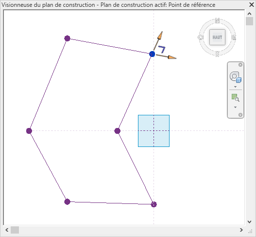 La visionneuse du plan de construction est disponible dans toutes les vues de modèle au sein de l'environnement de projet. L'orientation par défaut correspond au plan de construction actif de la dernière vue active.