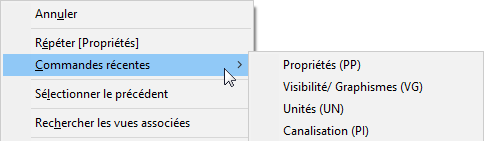- Cliquez avec le bouton droit de la souris dans le dessin et choisissez Commandes récentes