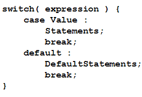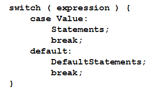 A switch statement provides a multi-way branch. The expression is evaluated once, then each case is checked in order to find one with a Value that matches the value of the expression. If a match is made, the Statements of the matching case are executed, after which control passes to the statement following the switch block. If no matching case is found, and there is a default case, the DefaultStatements are executed, after which control passes to the statement following the switch block. If there is no matching case and no default, no statements within the switch block are executed, and control passes to the statement following the switch block.