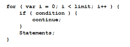 If a continue statement is encountered in a for loop, execution immediately passes to the third part of the for loop (normally where a counter is incremented or decremented), and then execution continues normally, i.e. the middle part of the for loop (the conditional) is tested, and if true, the body of the loop is executed.