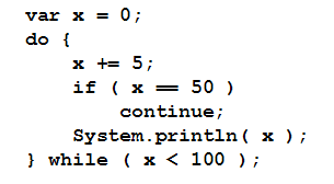 The example prints 5, 10, 15, ..., 45, 55, 60, 65, ..., 95 on the console.