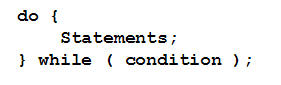 The Statements in the braces following the do are executed once. If the while condition evaluates to true, execution passes back to the do, and the whole process repeats. If the while loop's conditional ever becomes false, execution continues from the statement following the while statement.