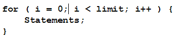 The for statement is broken into the following parts: the keyword for, an opening parentheses, zero or more statements (the first part), a semi-colon, a conditional expression (the second part), a semi-colon, zero or more statements (the third part), a closing parentheses, and finally a statement or block that is governed by the for loop.