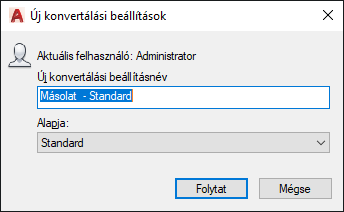 KONVERTDWG (parancs) Keres: Konvertálási beállítások > Új
