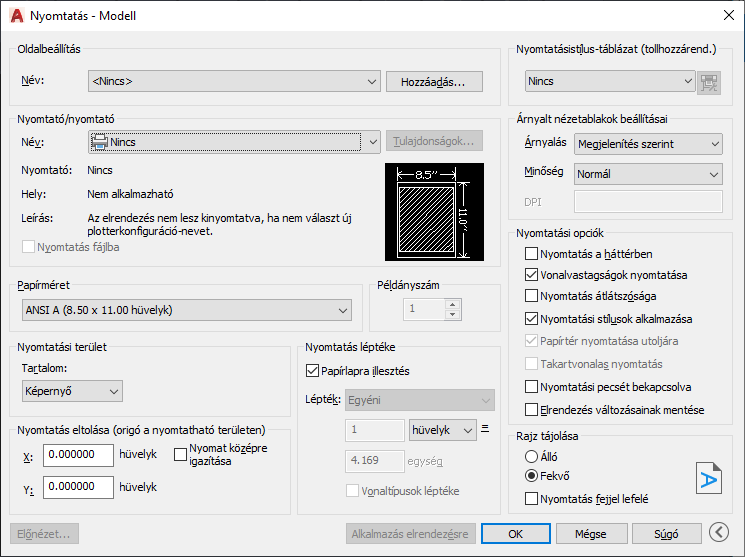 3. Válassza ki a papírméretet, a nyomtatási területet, a nyomtatás léptékét, a tájolást és az egyéb beállításokat.
