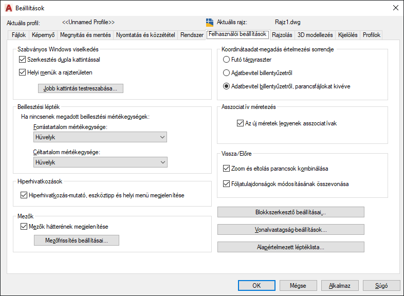 Vezérli a blokkok és rajzok rajzba illesztésének alapértelmezett léptékét.