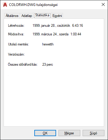 Ezek a fájltulajdonságok segítséget nyújtanak, ha egy adott időszakban készült vagy módosított rajzokat keres.