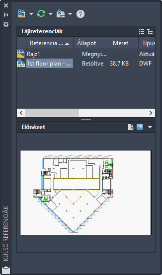 A rajzhoz csatolt alávetítések fájlspecifikus információit megtekintheti a Külső referenciák palettában. Ugyanitt betölthet, illetve a memóriából törölhet alávetítéseket, és más műveleteket is végrehajthat.