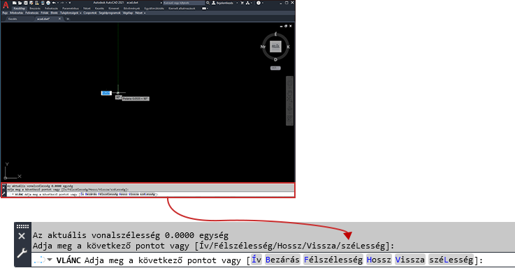 A rögzített parancsablak ugyanolyan széles, mint az alkalmazás ablaka. Állandó helyen jelenik meg, a rajzterület fölött vagy alatt.