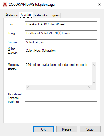 Adatlap (Rajz tulajdonságai párbeszédpanel)