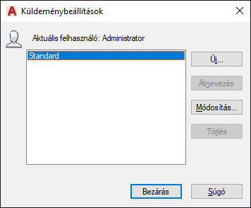 Átnevezi az éppen kijelölt küldeménybeállítást.