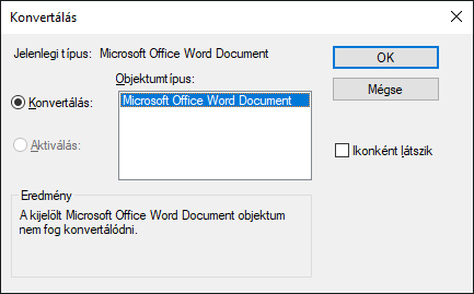 Az Objektumtípus területen megadott típusként nyitja meg a beágyazott objektumot, de a módosítás után visszatér az aktuális típushoz.