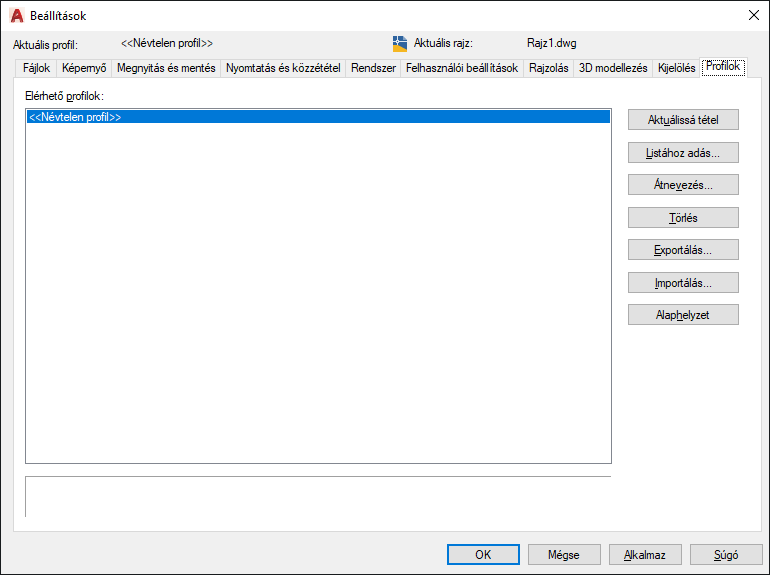 Megjeleníti a Profil módosítása párbeszédpanelt a kiválasztott profil nevének és leírásának módosításához. Akkor használja az Átnevezés gombot, ha át kívánja nevezni a profilt, de az aktuális beállításait meg kívánja őrizni.