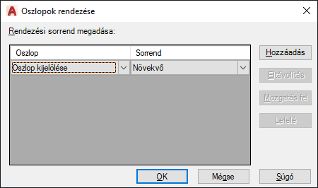 Az oszlopok rendezési sorrendjét adja meg. Az Oszlop rész az Adatok finomítása lapról származó oszlopneveket tartalmaz.