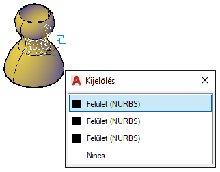 Ha található aktív alobjektum-kiválasztási szűrő, a 3D modell kívánt lapjának, élének vagy csúcsának kijelöléséhez nem kell nyomva tartania a Ctrl billentyűt. Ugyanakkor ki kell kapcsolnia a szűrőt a teljes objektum kijelöléséhez. Az alobjektum-kiválasztási szűrő aktuális beállítását a SUBOBJSELECTIONMODE rendszerváltozó tárolja.