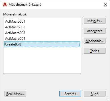 A Műveletmakró-kezelőben megjelennek a rögzített műveletmakró-fájlok (ACTM-fájlok).