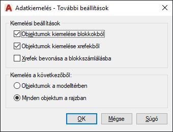 A rajz modellterében és papírterében lévő összes objektumot beleveszi, beleértve a rajzadatokat is. Alapértéke: Be.