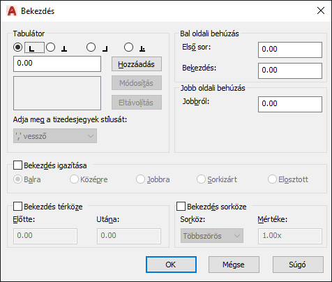 Megjegyzés: Az AutoCAD 2007-ben és a korábbi kiadásokban nem minden új bekezdésre és bekezdés-sorközre vonatkozó opció támogatott.