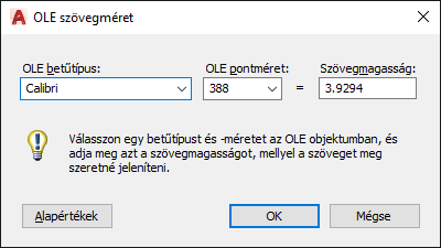 OLE szövegméret párbeszédpanel