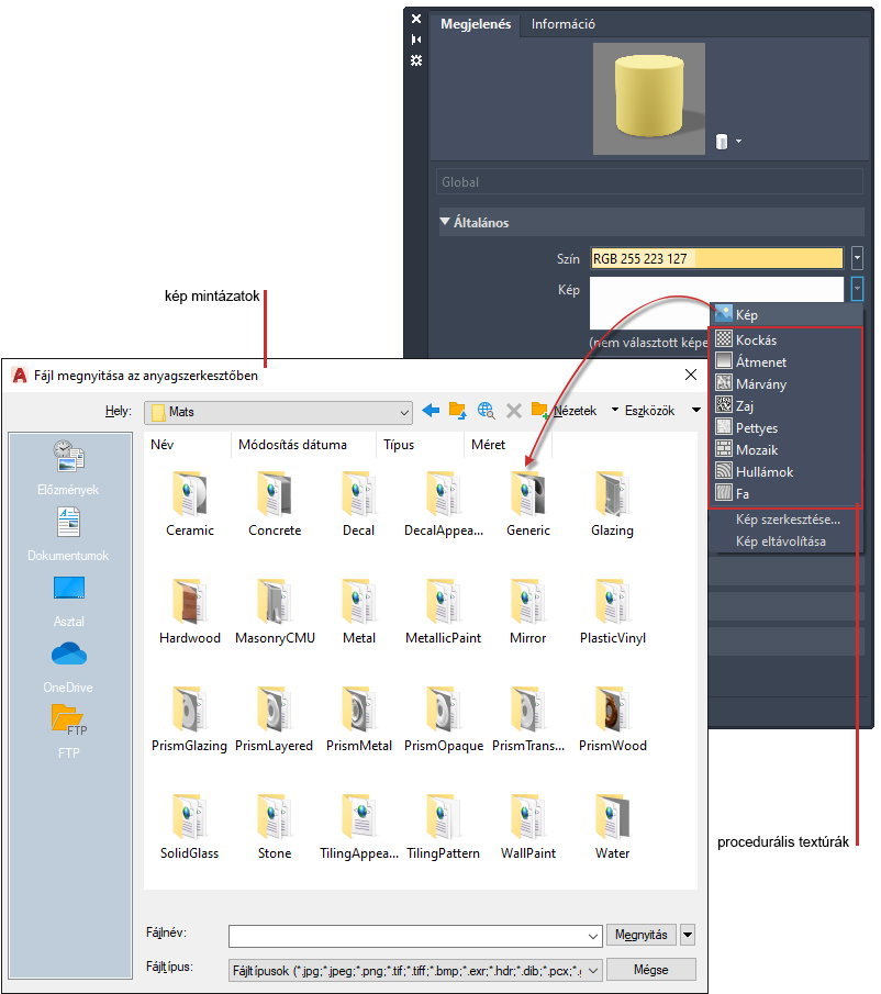 Textúrát rendelhet egy anyagszínhez.