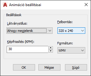 Felsorolja az animáció lehetséges kimeneti formátumait. A rendelkezésre álló formátumok: AVI, MPG, WMV és MOV.