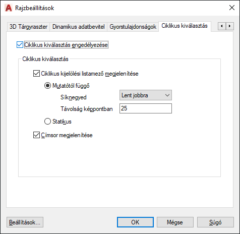 Ciklikus kiválasztás lap (Rajzbeállítások párbeszédpanel)