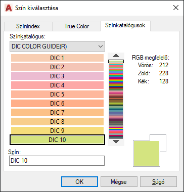 Megadja a szín kiválasztásához használni kívánt színkatalógust.