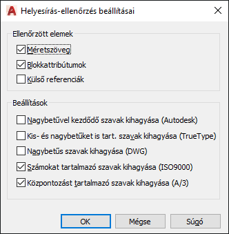 Helyesírás-ellenőrzés beállításai párbeszédpanel