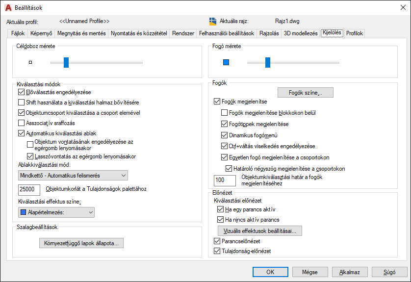 A kiemelés előnézetét csak akkor jeleníti meg, ha nincs aktív parancs. (SELECTIONPREVIEW rendszerváltozó)