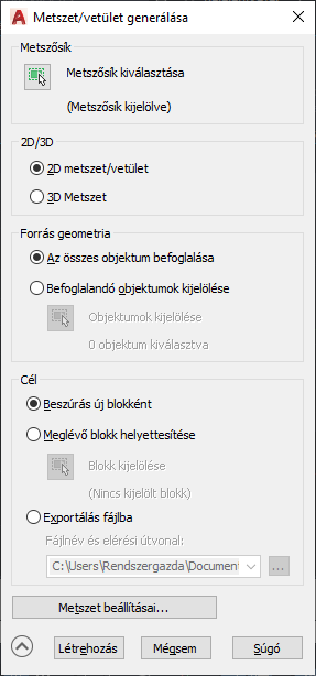 Megadja a fájlnevet és elérési útvonalat, ahova a metszet mentése történik.
