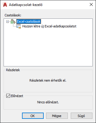 Megjelenik a csatolt adatok előnézete, ahol az adatok úgy látszanak, mint a rajz táblázatában. Ha éppen nincs kijelölve adatkapcsolat, nem jelenik meg előnézet.
