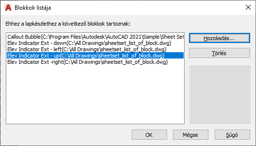 Megjeleníti az aktuális lapkészlettel használható blokkok listáját.
