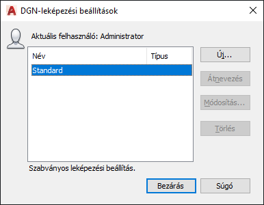 Leképezési beállításkészletek létrehozását, átnevezését, módosítását, illetve törlését teszi lehetővé a DGN-adatok importálásához és exportálásához.