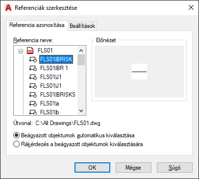 Megjeleníti a kiválasztott referenciafájl helyét. Ha nem egy blokk, akkor nem jelenik meg útvonal.