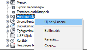 Az új helyi menü (HelyiMenü1 néven) a Helyi menük csomópont aljára kerül.